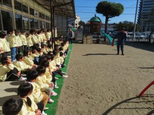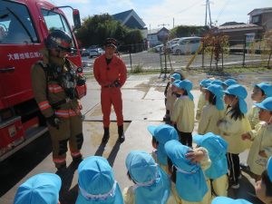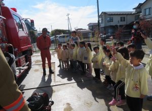 消防士さんが、来園して火災を想定した避難訓練を実施しました。