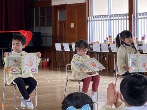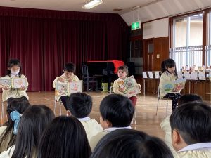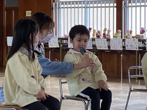 毎月行われている誕生会、3月はひな祭りの3月3日でした。木々や花が芽吹き始め春の陽気を感じる季節に生まれた子ども達🌸お家の方からのメッセージやプレゼントをもらって嬉しいことがいっぱいです。インタビューにも元気に答えてくれました。今月のお楽しみは「ぴょんこちゃんのひな祭り」です🎵